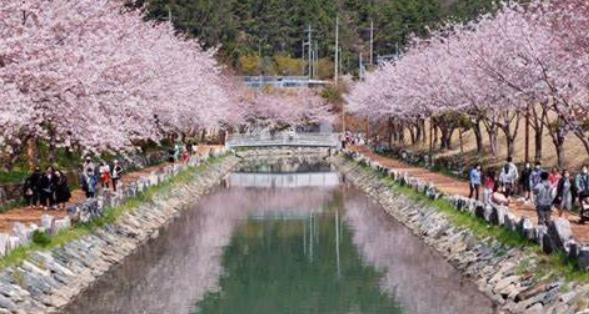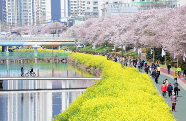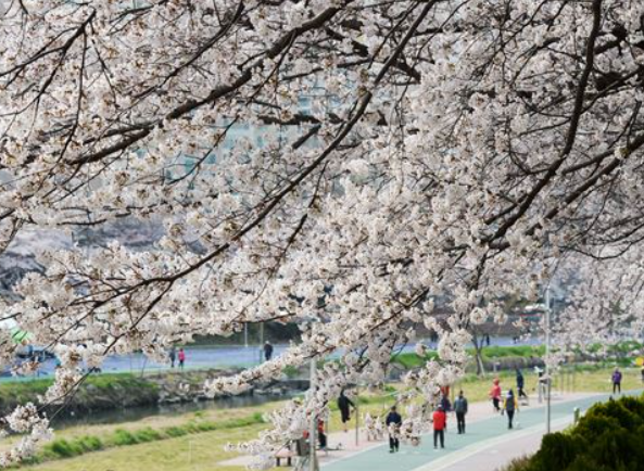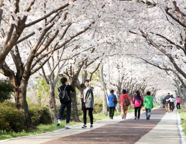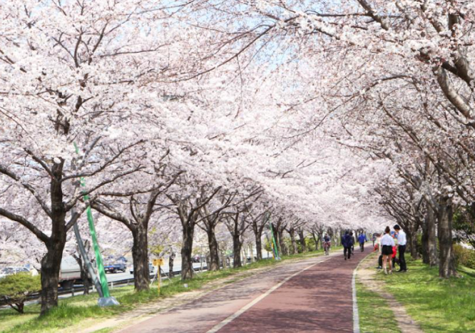 - 특징: 도심 하천변에 조성된 벚꽃길