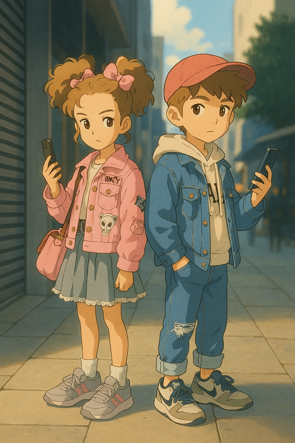 - 지브리 스타일 캐릭터는 큰 눈, 따뜻한 표정, 자연스러운 포즈가 특징입니다.
