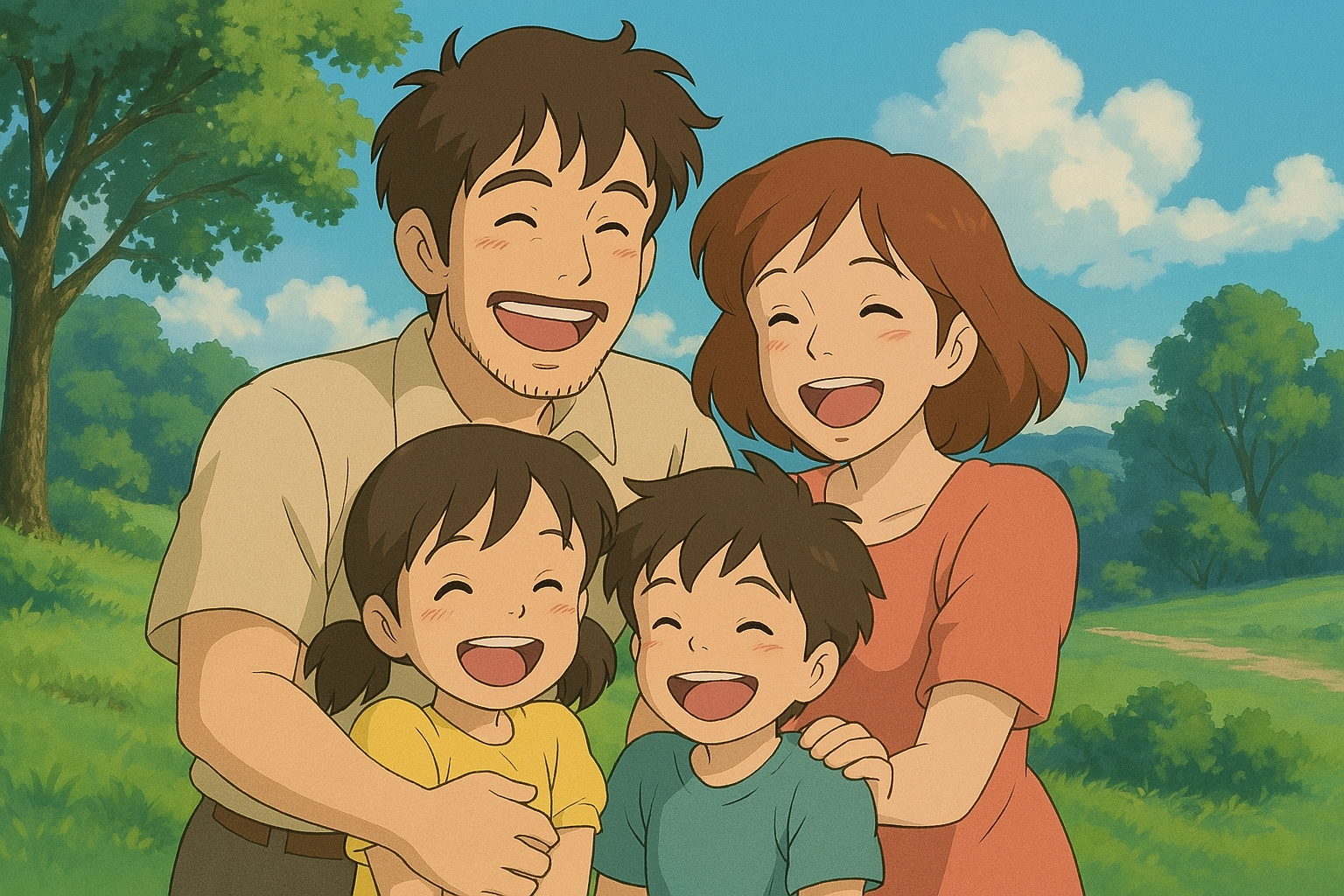 저는 간단히 한 가족의 모습을 지브리 스타일로 생성해달라고 했어요.