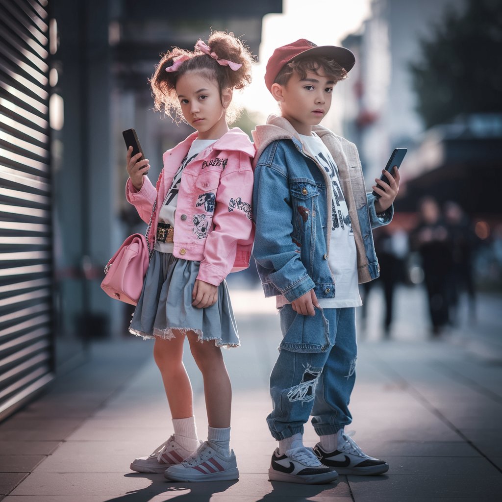"황금빛 석양이 비추는 언덕, 바람에 살랑이는 들풀과 그 속을 걷는 아이들의 모습"
