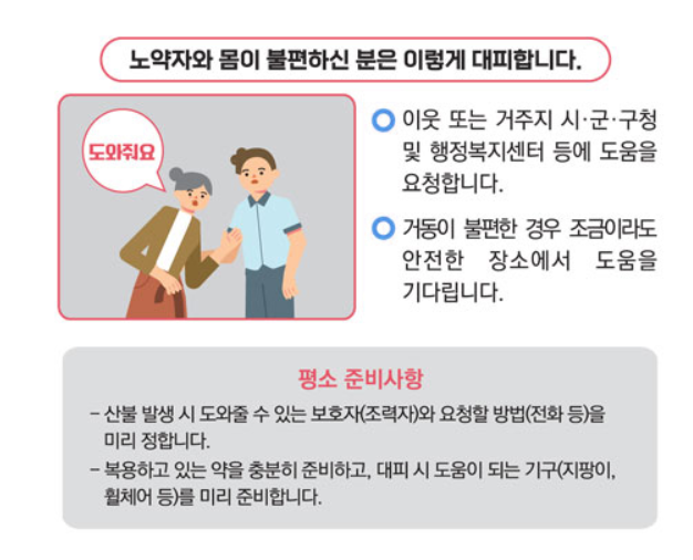 - 거동이 불편한 분들은 주변에 도움을 청하세요.