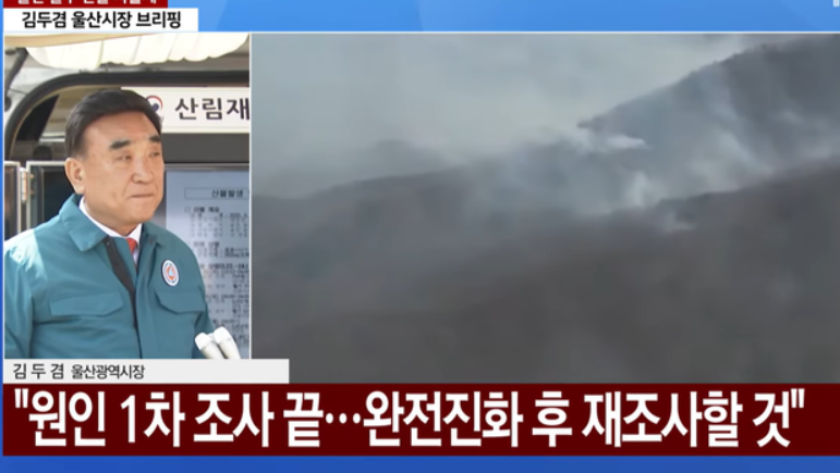 울주군 온양읍에서 5일째 산불이 계속되며, 현재 진화율은 약 96%입니다. 10개 마을 주민이 긴급히 대피한 상태입니다.