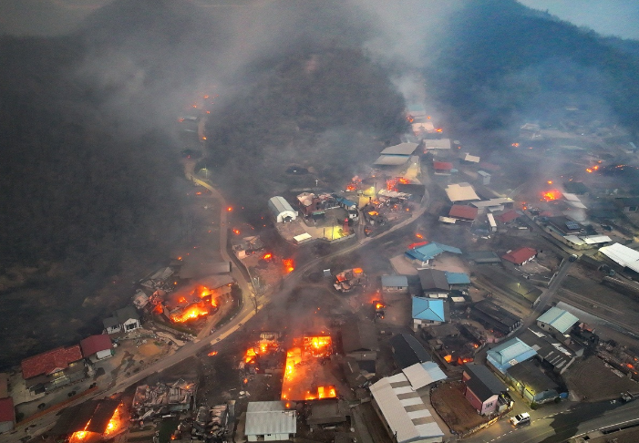 의성군 안평면과 안계면에서 발생한 산불이 안동, 청송, 영양, 영덕까지 빠르게 확산 중입니다. 현재 피해 면적은 약 1만 4,501헥타르로 역대 세 번째로 큰 규모이며, 진화율은 62%입니다.
