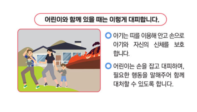 - 아기는 안전하게 안고, 어린이는 손을 잡고 함께 이동하세요.