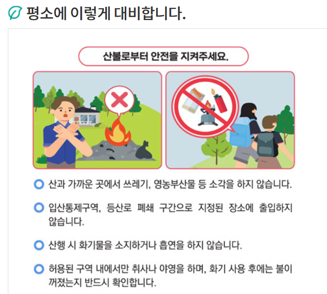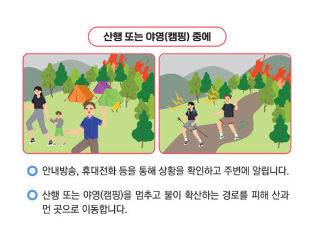 - 산불 발견 시 즉시 119 또는 112로 신고하세요.